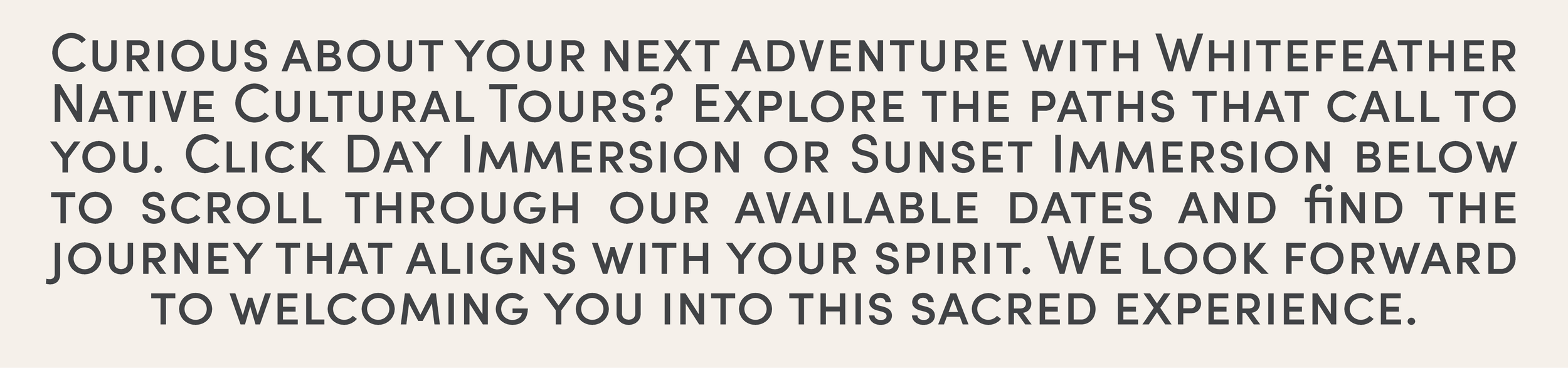 Whitefeather Cultural Tours offers immersive half-day experiences that allow you to disconnect from the modern world and reconnect with nature, spirit, and the wisdom of indigenous cultures.